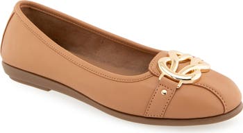 Step out in style with a casual round-toe flat topped with a gleaming buckle and lined with a cushy, quilted footbed for all-day comfort.