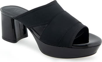 Simple yet sophisticated, this stretchy-strap slide sandal is grounded by a '70s-inspired platform sole for a chic, modern statement.