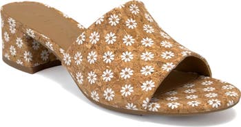 A plush, cushioned footbed and a low block heel keep you supported in this resort‑ready sandal, finished with a basket‑woven vamp strap and matching heel detail.