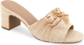 Tiered ruffles add a dramatic flourish to this richly-textured slide sandal built with an OrthoLite foam-cushioned footbed.