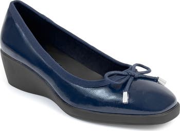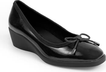 A delicate bow graces the top of a stylish loafer set on a cushioned footbed and walkable wedge heel for lasting comfort.