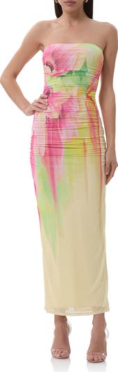 Perfectly paired with sunset cocktail hour, this vacation-ready dress is cut from airy mesh and designed in a strapless silhouette made to show off your shoulders.
