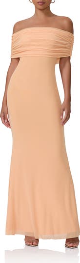 A frothy mesh dress shows off your shoulders and drapes gently over your curves for a party-perfect look that will get asked about.
