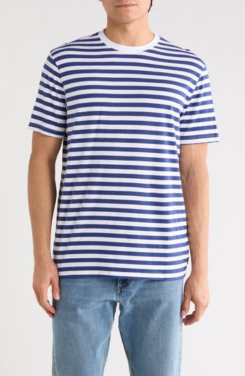 Refresh your casual essentials with this crewneck T-shirt cut from breathable cotton and covered with stripes.