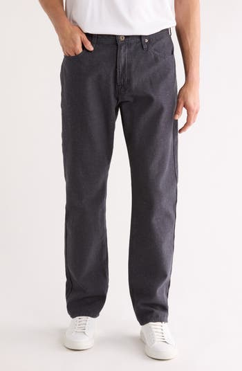 Made mostly with recycled cotton, these nonstretch jeans feature slim-cut straight legs and slightly flecked color for a unique look.