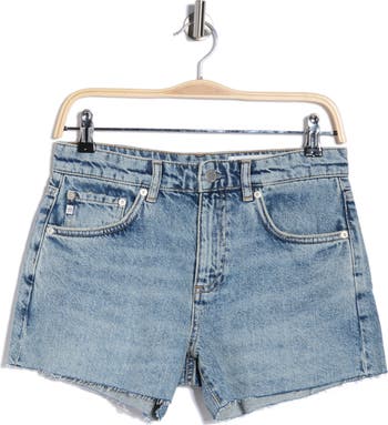 A faded wash and raw hems bring '90s-inspired style to these mid-rise shorts cut from comfortable cotton nonstretch denim.