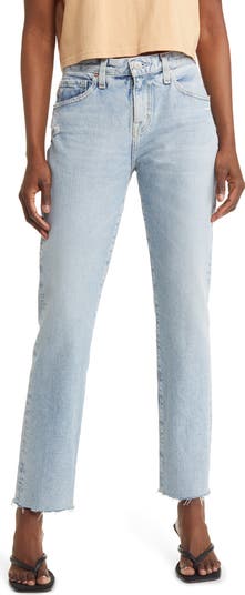 A laid-back mix of slim and slouchy, these boyfriend jeans are made from faded Japanese stretch denim with raw hems for a lived-in look.