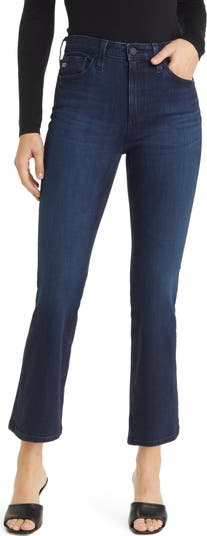I love how these fit. The high waist and flared bottom is flattering on my 5'5" frame, and there's still some crop to work with different heel hights. However, I had to knock off a star because they dyed my legs and fingernails blue. At this price point, I would not expect that. Don't sit on any light colored furniture til after a wash.