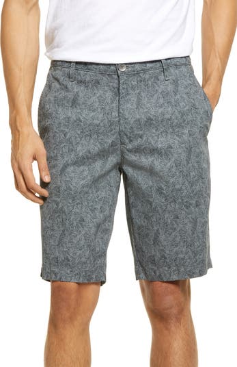 Subtle, shadowy patterns keep the mood easy and relaxed in flat-front chino shorts tailored for comfort from a stretchy Italian-cotton blend.