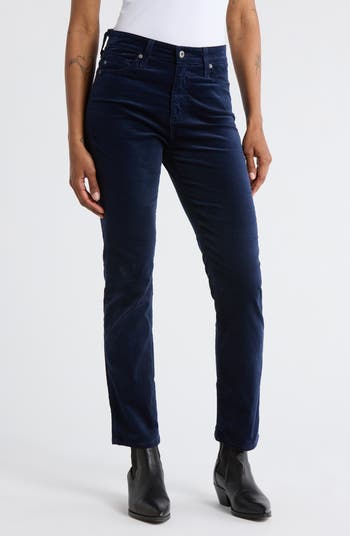 I ordered these AG Mari jeans in a color called “Deep Trenches.” They were velvet, not denim as described. Blue velvet jeans were not what I expected, so I’m returning them.