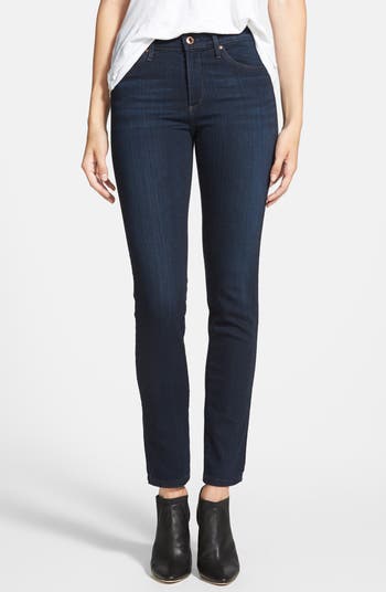 Versatile dark-wash jeans with minimal fading and classic details are perfectly slim and trim.