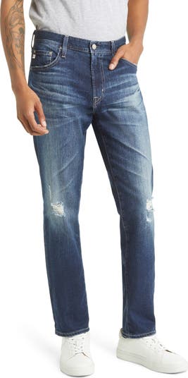A well-worn wash puts a classic stamp on slim-cut jeans shaped from stretchy cotton denim.