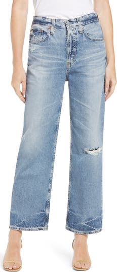 Worn-in with love, these boyfriend-style jeans feature threadbare distressing and a faded wash marking the vintage-feel nonstretch denim.