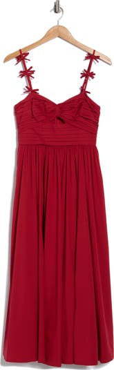 Agnes Bow Strap Pleated Fit & Flare Dress