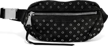 Gleaming eyelets embellish a versatile leather belt bag that lets you keep your essentials secure while you roam hands-free.