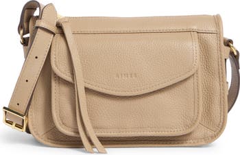 Multiple pockets have plenty of room for your belongings in a crossbody bag shaped from grained leather for a refined appearance.