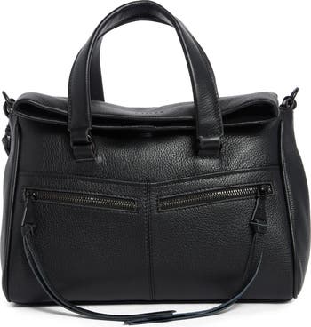 Elongated tassels swing from the twin front zip pockets of this roomy satchel made from pebbled leather and topped with over-the-shoulder handles and an optional, adjustable strap.