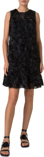 A bountiful bouquet of gauzy silk-tulle carnations blooms in three dimensions all over this sleeveless sheer dress tailored with a dropped waist and a gleaming back zip with a dot-motif-signifier ring pull.