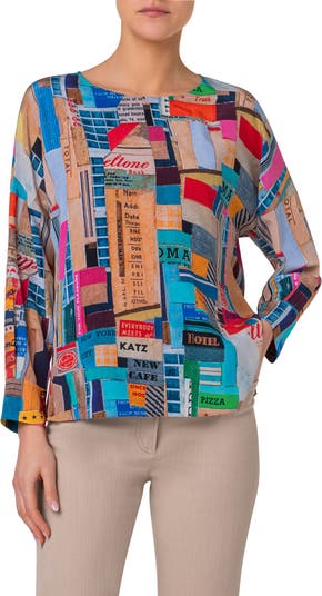 NYC Paper Collage Print Silk Crêpe de Chine Top