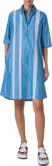 Pajama Stripe Cotton Poplin Belted Shirtdress