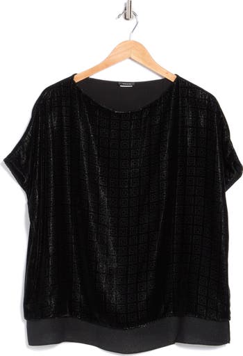 Enrich your wardrobe with this shimmery, silk-enriched velvet top framed by relaxed dolman sleeves and a vented high-low hem.