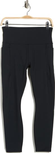 Head to the gym or studio in these lightweight, stretchy performance leggings framed by a wide waistband and handy side pockets.