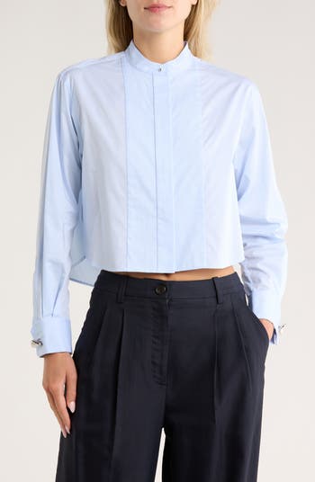 Organically shaped pearly buttons highlight the cuffs of this long-sleeve button-up shirt cut from crisp cotton poplin in a cropped silhouette.