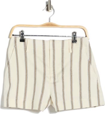 Linen-blend construction lends all‑day breathability to these flat‑front shorts covered in variegated stripes.