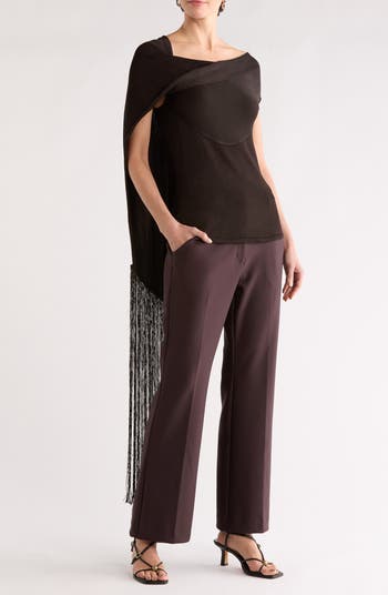 A fringed, draped neckline lends on-trend appeal to a statement-making top that's a perfect choice for your next night out.