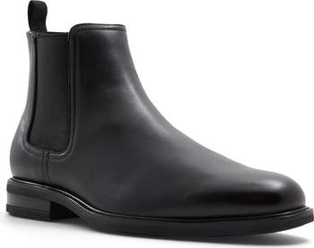 Ground any ensemble with timeless refinement with this easy-on ankle boot outfitted with a smooth leather upper and stretchy side goring.