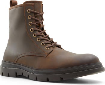 A toothy grooved sole grounds this waterproof combat boot constructed from rich leather that easily navigates rainy days and slushy streets.
