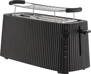 Designed by Michele De Lucchi in thermoplastic resin, this toaster features vertical pleats for added texture and includes a stainless steel brioche warmer for artisanal breads.