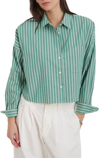 A boxy crop adds casual charm to a classically striped shirt cut from crisp cotton.