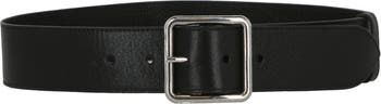 | Add a polished finishing touch to your look with this wide Italian leather belt finished with a gleaming square buckle. |