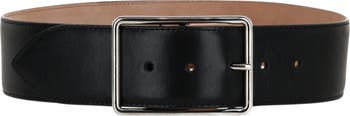 Add a polished finishing touch to your look with this wide Italian leather belt finished with a gleaming square buckle.