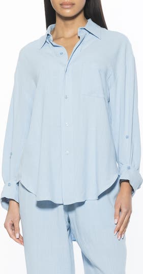 An oversized fit allows for easy layering in a button-up shirt crafted from linen and cotton that's lightweight and breathable.