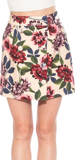 Go from desk to dinner in a high-waisted miniskirt featuring a double-breasted button closure and back welt pockets for polished style.