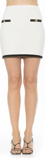 Colorblocked trims and polished hardware amp up the style points of this knit miniskirt that's a must-have for elevating your special-occasion attire.