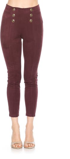 Gleaming buttons highlight soft faux-suede leggings cut in a trendy ankle-crop silhouette.