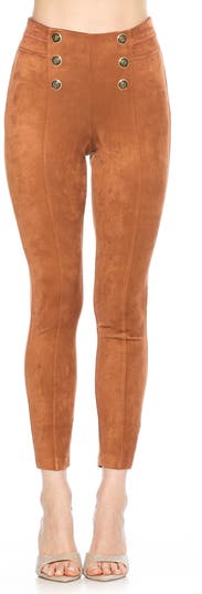 Gleaming buttons highlight soft faux-suede leggings cut in a trendy ankle-crop silhouette.