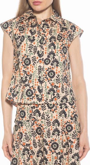 A hint of stretch amps up the comfort of this button-up shirt that's updated with a cap-sleeve silhouette.