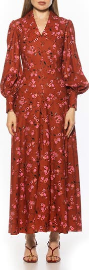 An exaggerated collar and blousy long sleeves bring subtle drama to a sophisticated shirtdress cut to a beloved ankle-grazing length.