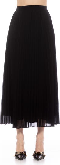 Accordion pleats add darling detail to a twirl-worthy midi-length skirt fashioned from airy chiffon.