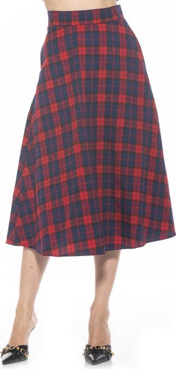 Evoke perfectly polished style in a flowy A-line skirt fashioned with a classic plaid print.