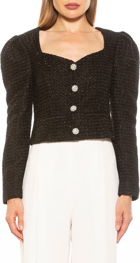 Puff shoulders and novelty buttons define this ultrachic tweed jacket that'll elevate any look.