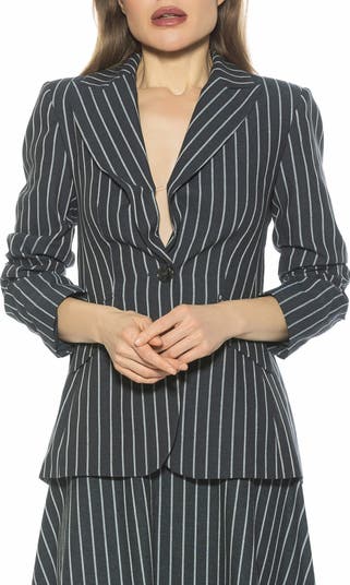 This suiting-inspired jacket tailored from linen and cotton features a structured silhouette softened by scrunched sleeves.