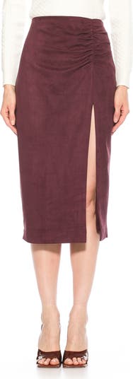 Elevate your wardrobe with a high-waisted skirt cut from soft faux suede with trendy ruching and a sultry thigh-high slit.