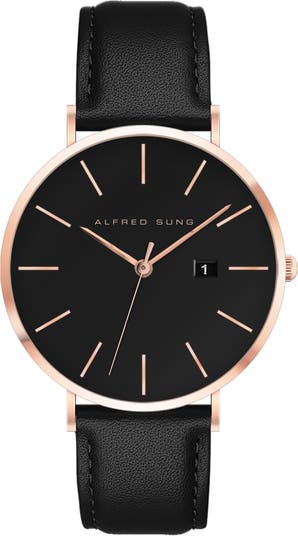 This sleek and minimalist leather-strap watch with streamlined indexes brings functionality and luxe style to your everyday look.