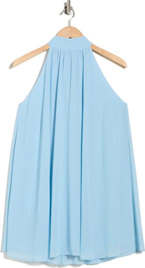 A dramatic back bow secures the halter neck of this flowy trapeze minidress that's perfect for a day or night out.