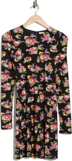 A garden of blooms sweetly patterns a stem-baring long-sleeve dress that's made with a touch of stretch for day-to-night comfort.